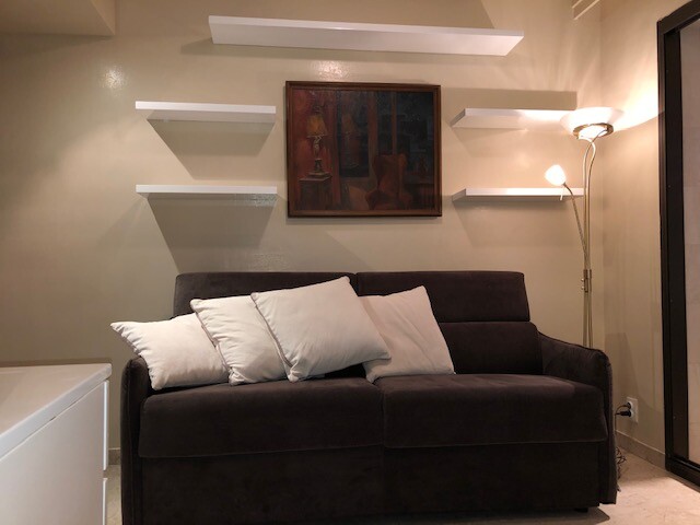 coquet Studio avec jardin privatif, grande salle de bains, meublé, usage mixte.