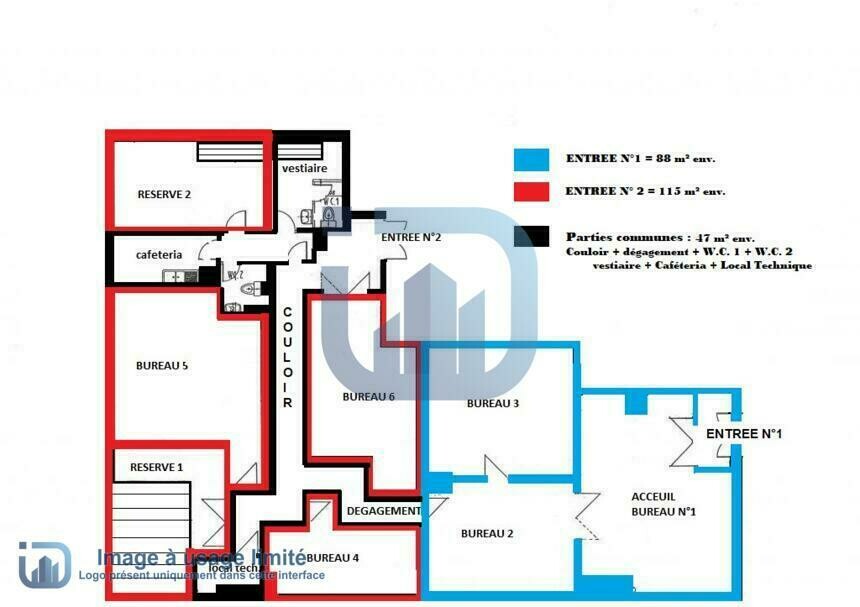 Espace de bureaux à louer actuellement composés d'une entrée, 3 espaces de bureau, cafétéria et 2 réserves.