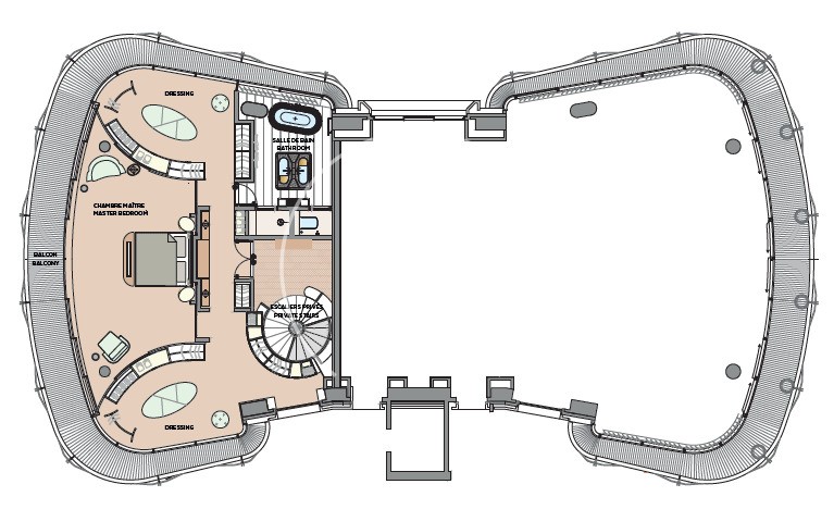 Au 9ème étage: chambre de maître avec salle de bain et double dressing