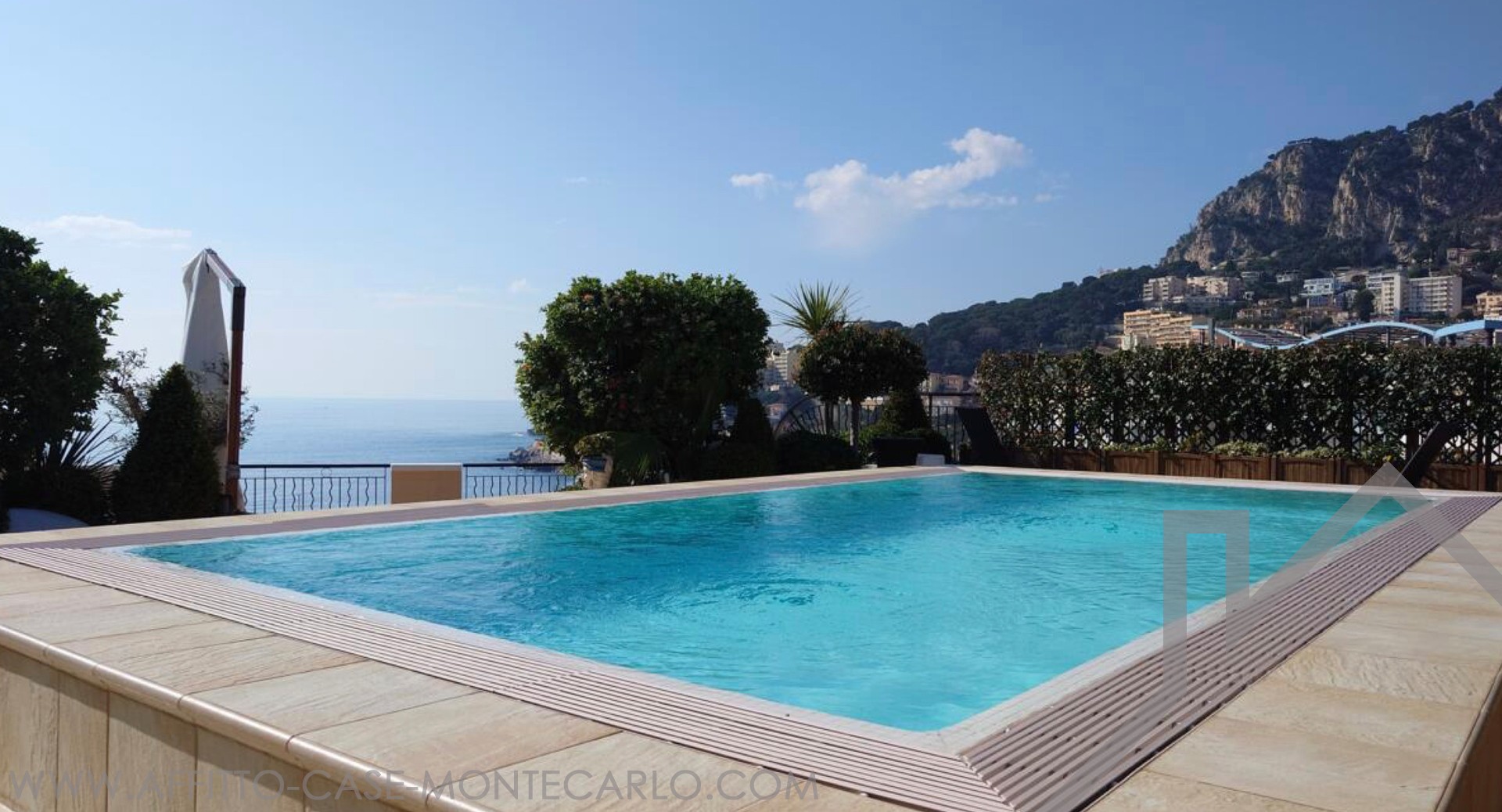 L'appartement de  7 pièces d'une surface habitable de 366 m² et 336 m² de terrasses bénéficie d'une piscine privative ainsi que d'une vue sur le Port de Cap d'Ail et la mer.