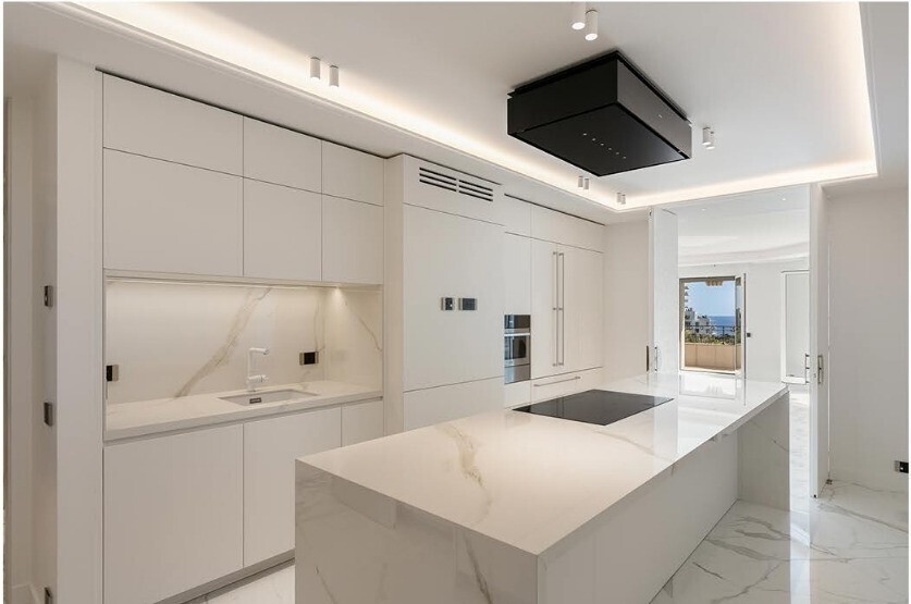 D'une surface habitable de 295 m², 25 m² de veranda et 108 m² de terrasses, ce 5 pièces situé au 4ème étage entièrement rénové avec des finitions de haute qualité bénéficie d'une vue sur la mer.