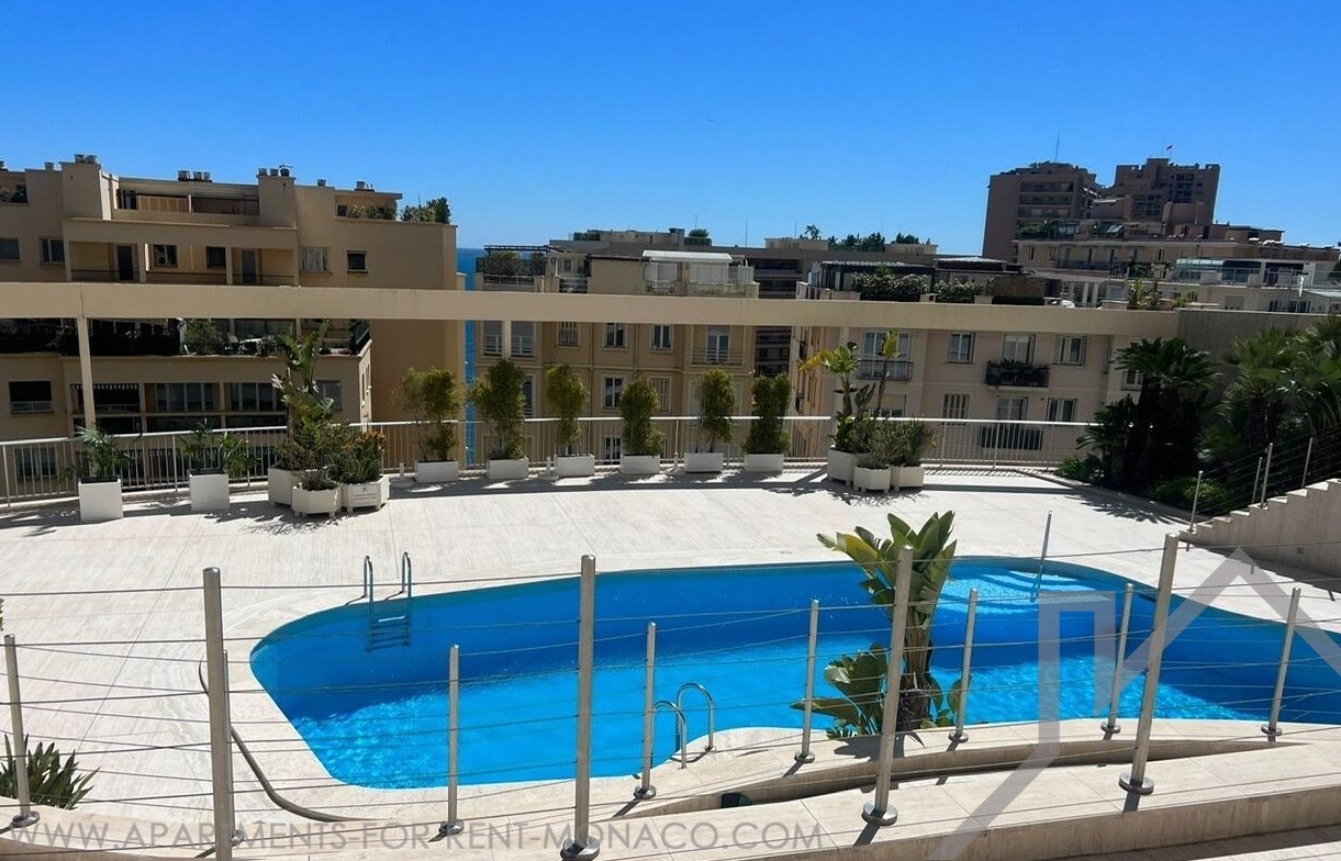Concierge 24/7 et piscine dans la résidence.