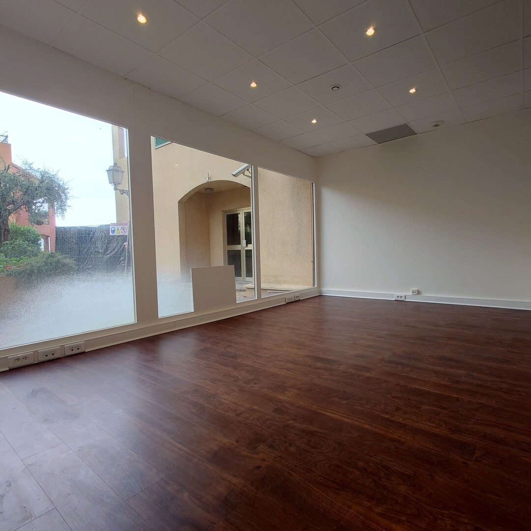 Spacieux bureau  avec grande baie vitrée offrant une vue sur les jardins composé d’une  pièce principale comprenant trois  bureaux avec fenêtres cloisonnées, un coin kitchenette, un  WC.