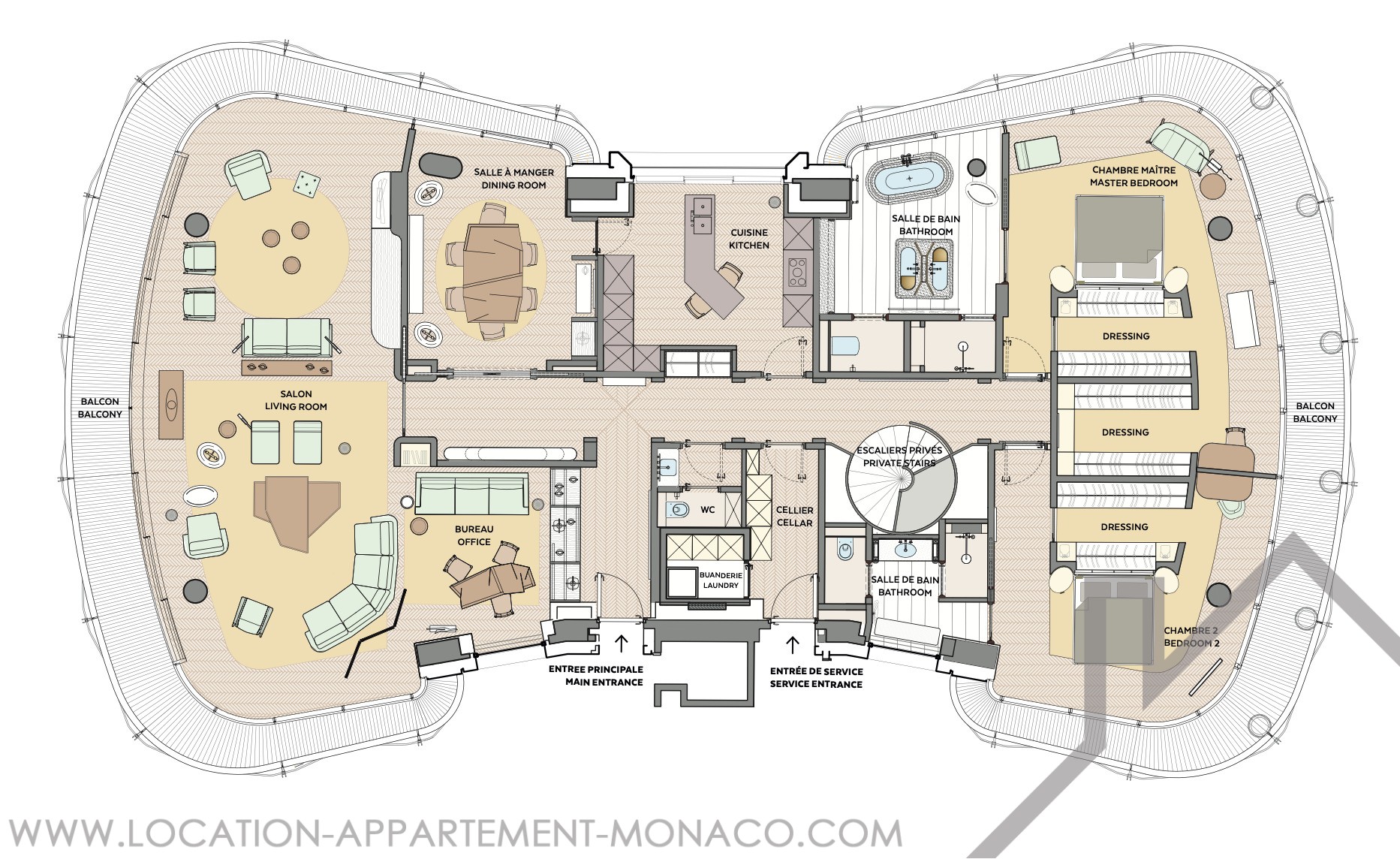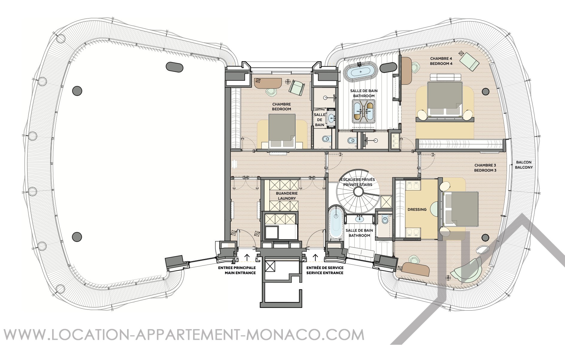 Ce superbe appartement en duplex dans le bâtiment E, offre 480 m² de surface habitable luxueuse entourée de 117 m² de balcons avec une vue imprenable sur la place du Casino et la mer Méditerranée.