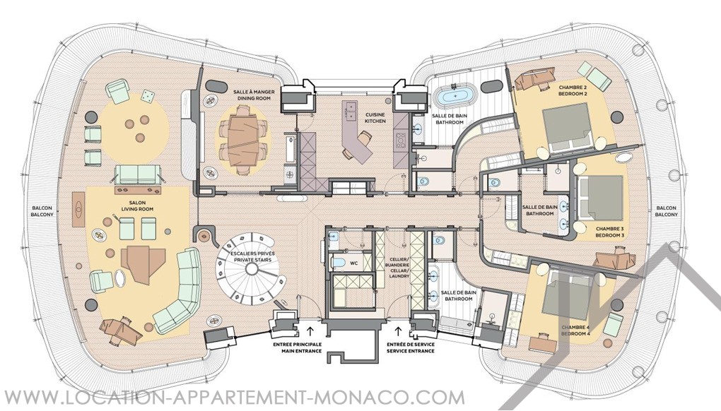 Bénéficiant d'une vue sur la mer et le Rocher , il se compose comme suit: