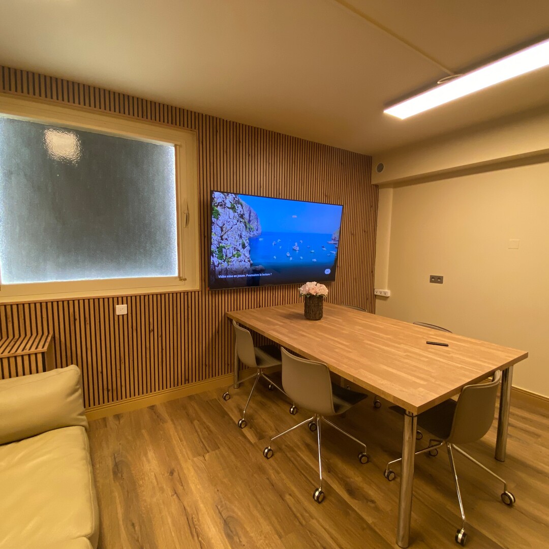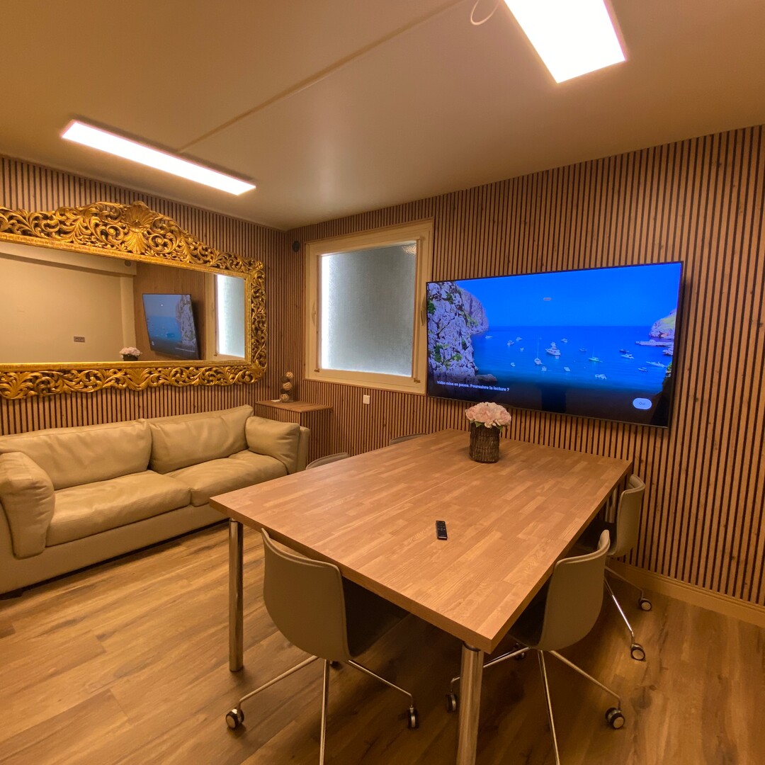 Nettoyage quotidien, Espace lounge, Machine à café, Service d'accueil, Permanence téléphonique, Réception du courrier, Salle de réunion pour 16 personnes, Ecran tactile, Réseau informatique, Service impression.