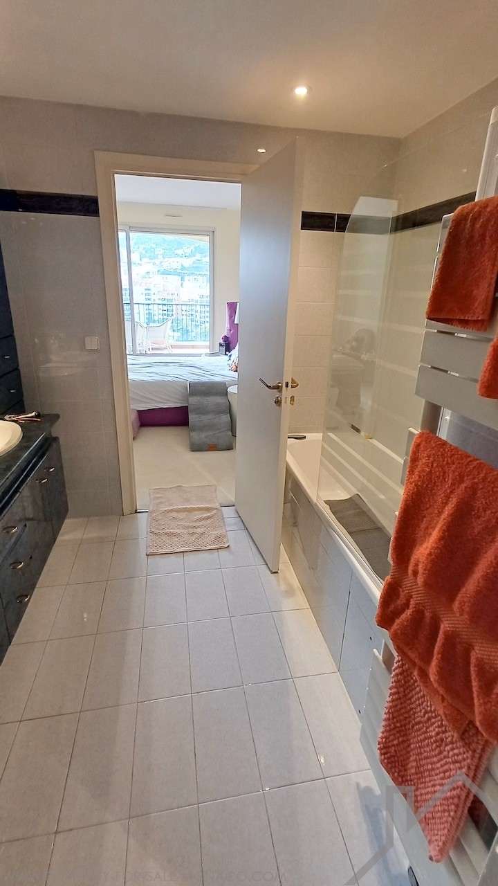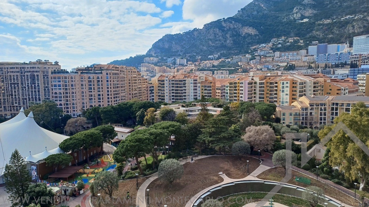 Quartier Fontvieille, bel appartement de 3 PIECES principales sis en étage élevé, jolie vue sur la Roseraie Princesse Grace, piscine privée.