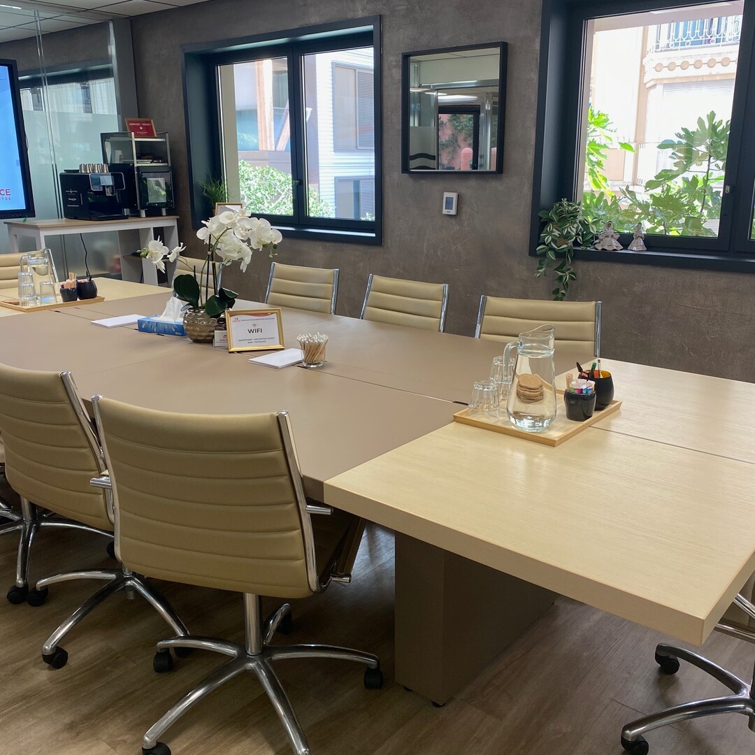 Réception du courrier, accueil physique et téléphonique, salle de réunion de 16 personnes accessible sur réservation, écran tactile, entretien quotidien, espace lounge, terrasse.