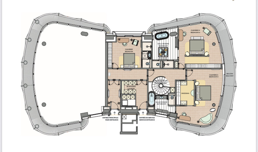 Bénéficiant d'une vue panoramique sur la mer et le Casino, il se compose comme suit: