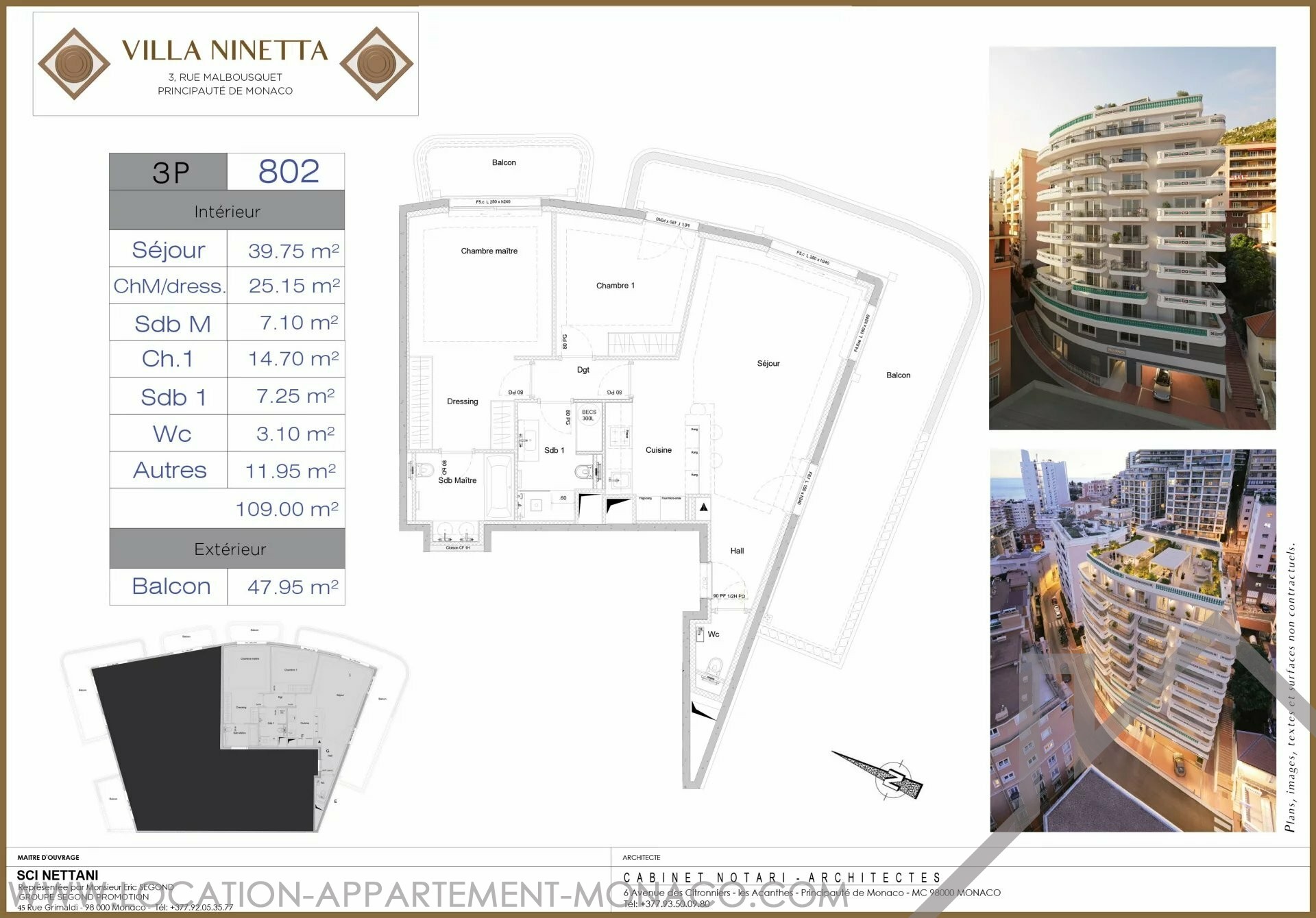 Location Exclusivité 3 pièces vue panoramique Villa Ninetta Monaco
