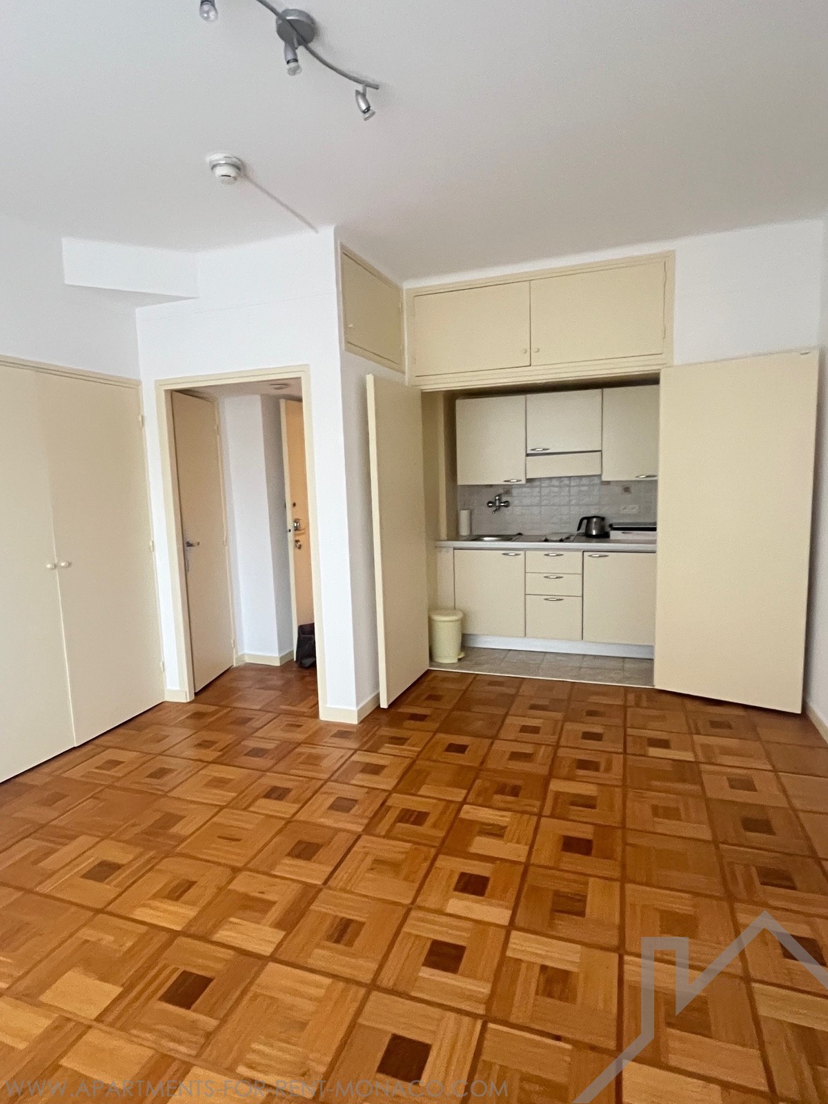 Cet appartement charmant est situé au premier étage du Continental se compose d’une entrée, une kitchenette équipée d’un réfrigérateur , d’une plaque de cuisson et d’une hotte aspirante, une grande salle de bains avec baignoire d’origine, mais en bon état, ainsi que d’une pièce principale offrant une agréable vue sur la Place des Moulins, au cœur de la vie de la Principauté.