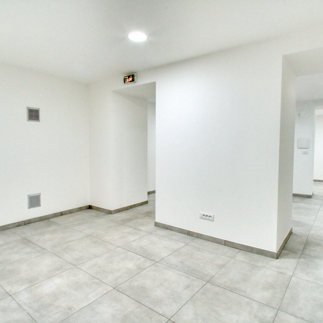 Le sous-sol propose un grand espace ouvert ainsi qu’un bureau fermé, idéal pour un usage de stockage, de salle de réunion ou d’espace de support.
