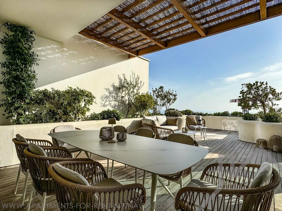 L'appartement dispose d'une terrasse spacieuse de 53 m² qui offre une vue panoramique imprenable sur la mer.