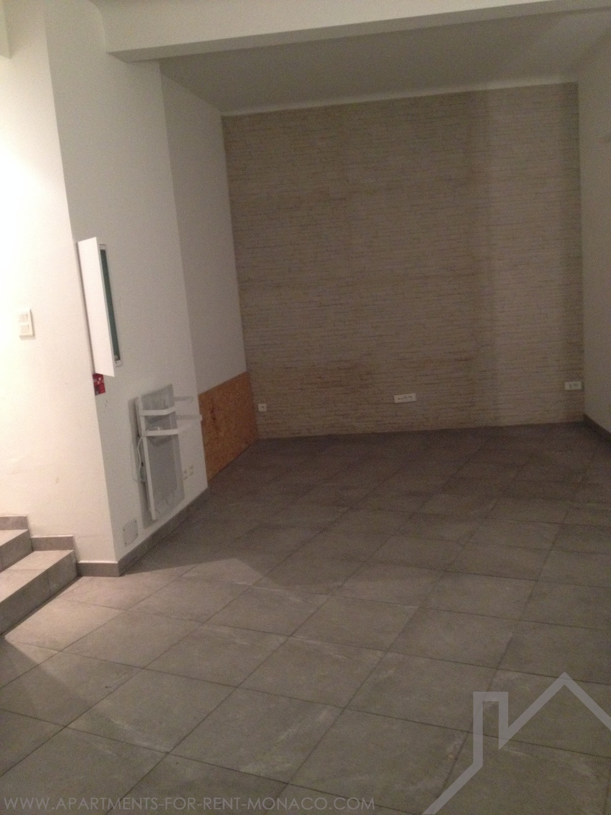 Situé dans le haut de la Condamine, proche commodités, accès direct rue Plati, beau local entièrement rénové composé d'une principale avec belle vitrine, salle de douche complète avec pierres apparentes.