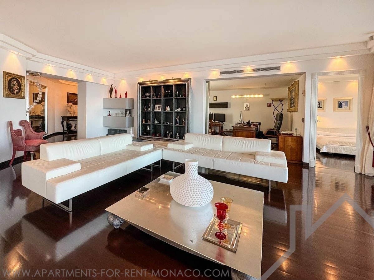 L'appartement propose un agencement idéal, comprenant un vaste double séjour, une cuisine équipée, des chambres spacieuses et un bureau discret et fonctionnel.