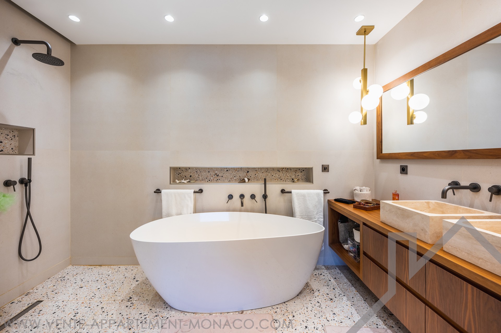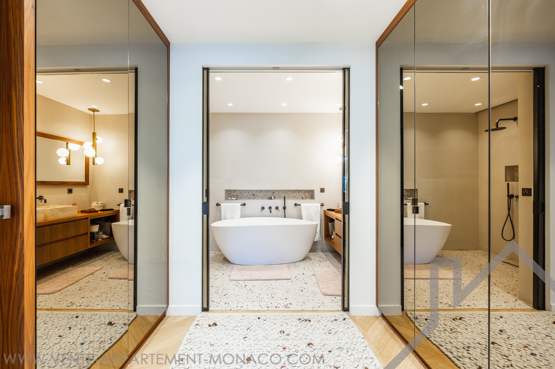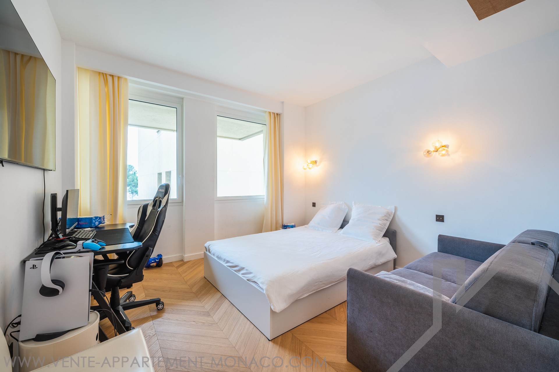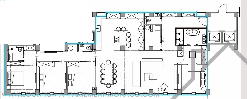 Situé sur le port Hercule, première lignée du Grand Prix F1, dans un immeuble avec concierge, magnifique appartement entièrement rénové avec des matériaux de qualité, composé d'un hall d'entrée, toilette invités, séjour, salle à manger, magnifique cuisine entièrement équipée, buanderie, chambre de maître avec dressing et salle de bains complète, 3 autres chambres avec placard dont une avec salle de bains complète, salle de douche, toilette invités, climatisation.