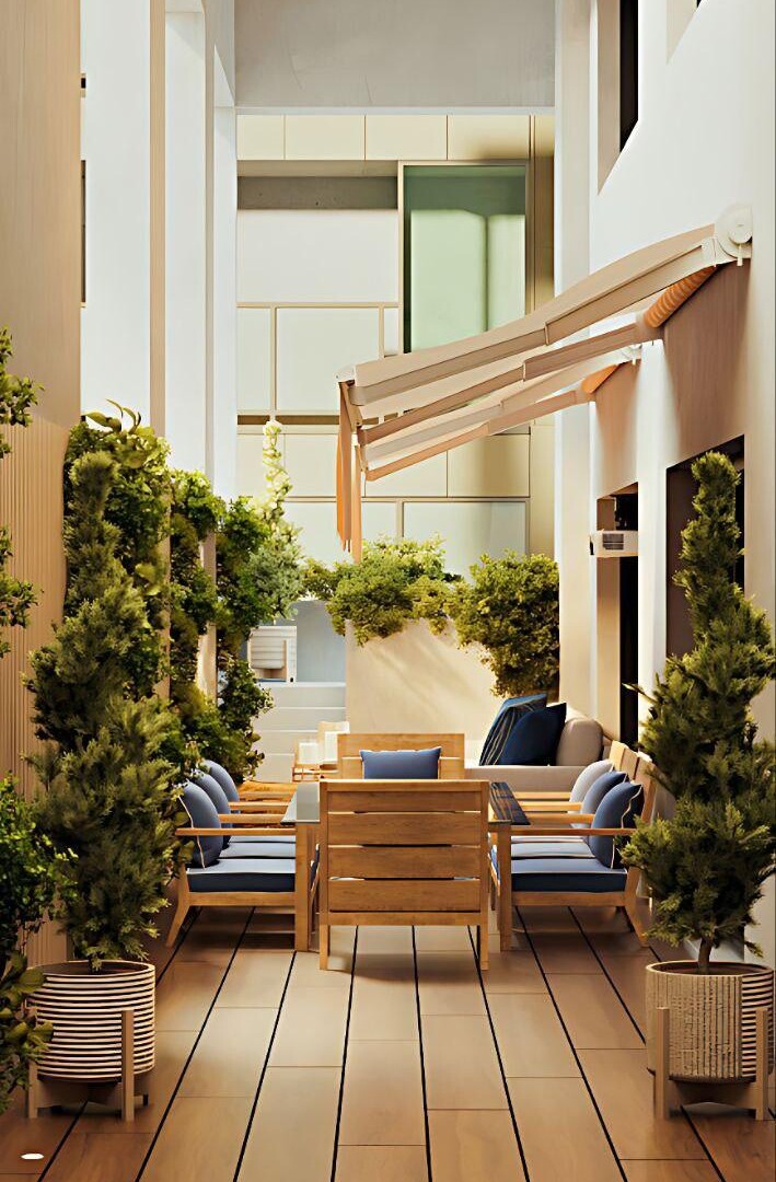 L’appartement comprend trois chambres spacieuses, chacune disposant de sa salle de bains privative, ainsi que de nombreux rangements intégrés.