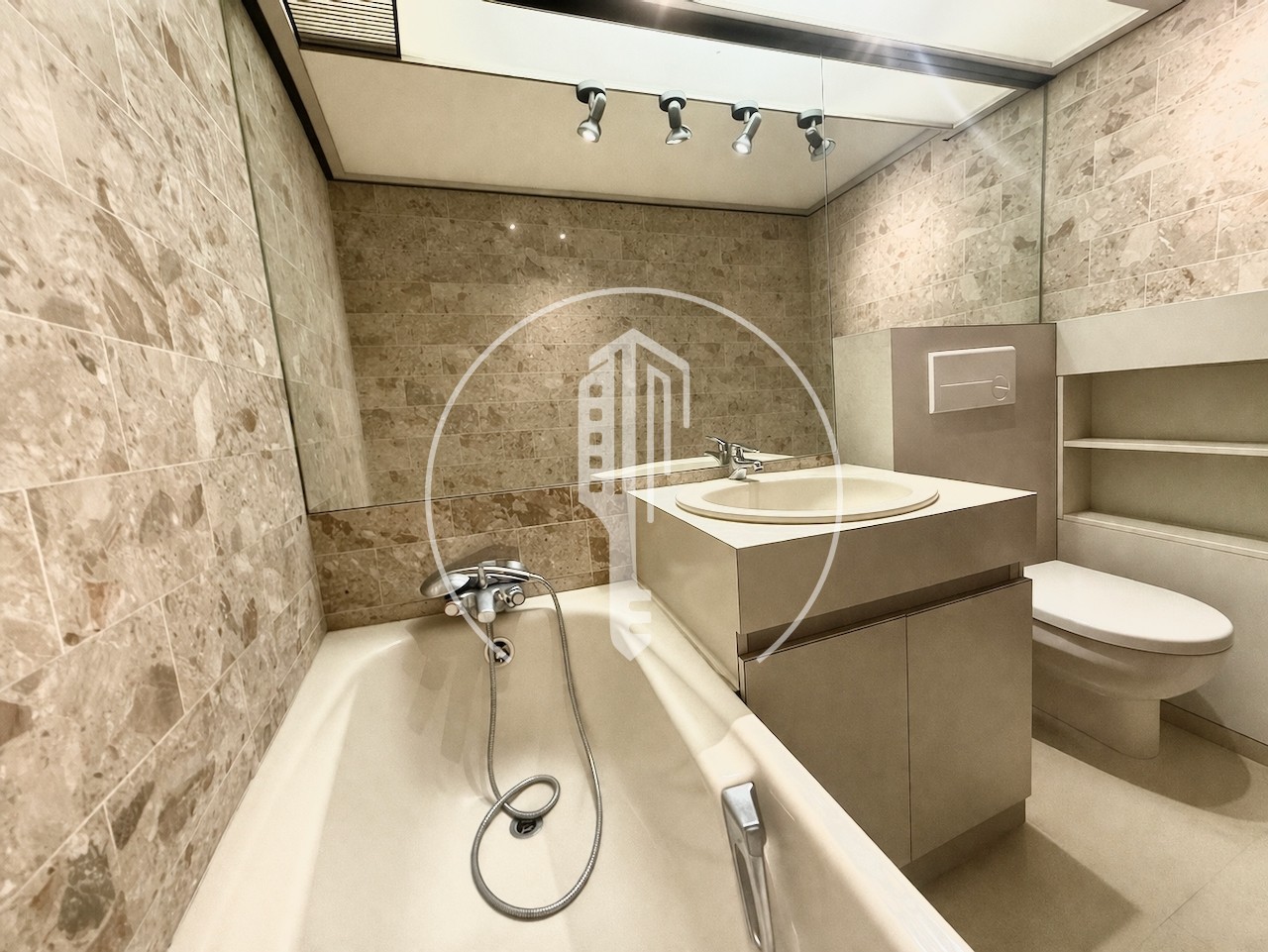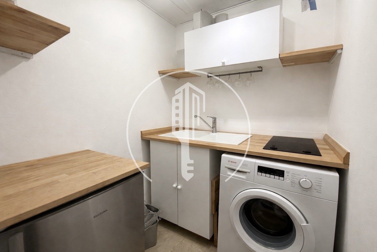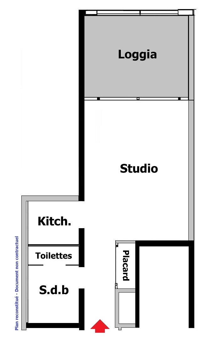 Entrée avec placard, séjour, kitchenette équipée, salle de bains complète, loggia, climatisation, double vitrage