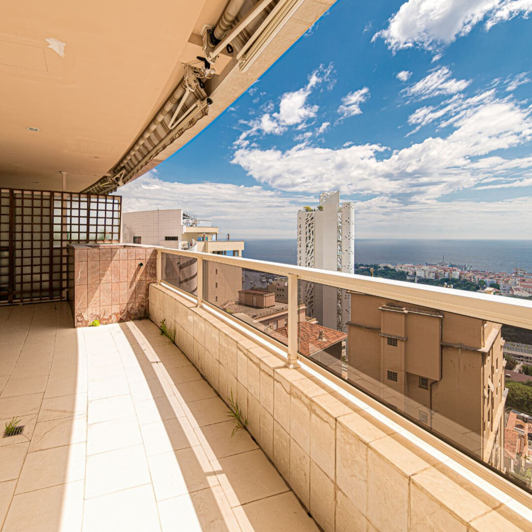 4/5 pièces meublé avec vue mer dans le quartier du Jardin Exotique, d'environ 209 m² de surface totale dont une surface habitable de 156 m² et 53 m² de terrasses (2 + 1 balcon) . Description: Hall, entrée, grand séjour/ salon ouvrant sur la terrasse, cuisine indépendante équipée, toilettes invités, 3 chambres ouvrant sur terrasse ou balcon, 2 salles de bains, 1 salle de douche. 1 cave et 1 parking. Libre en juin 2026