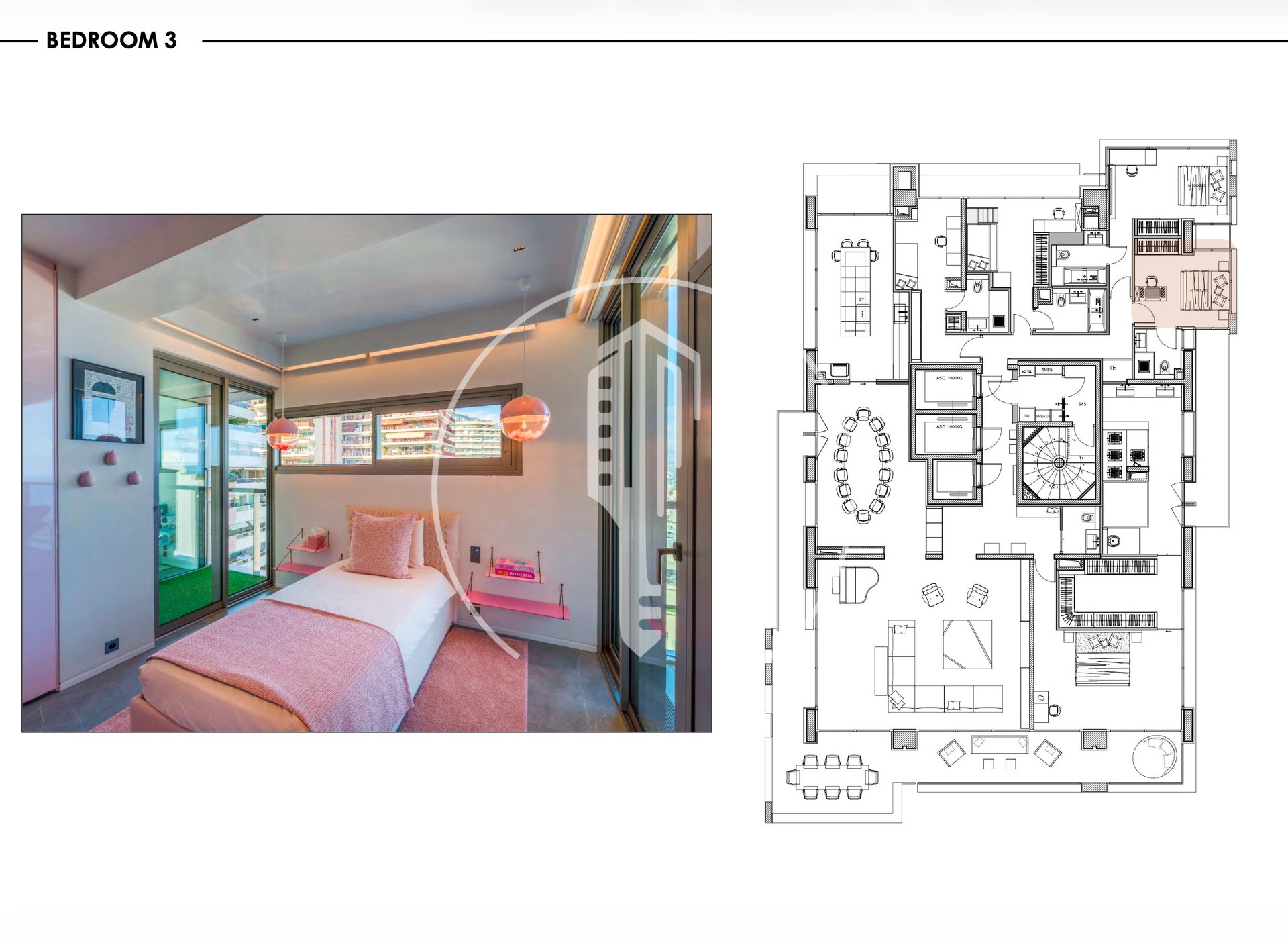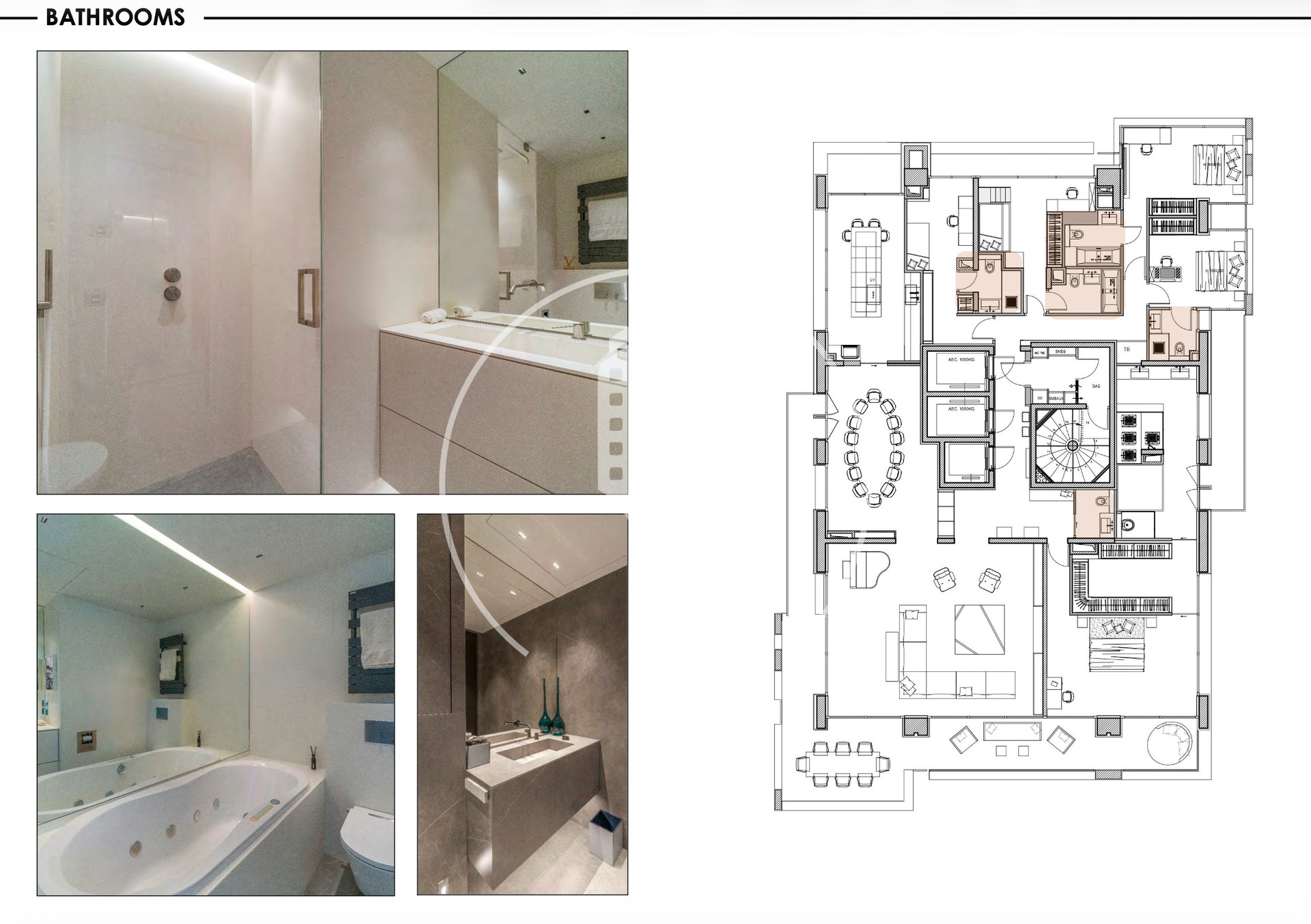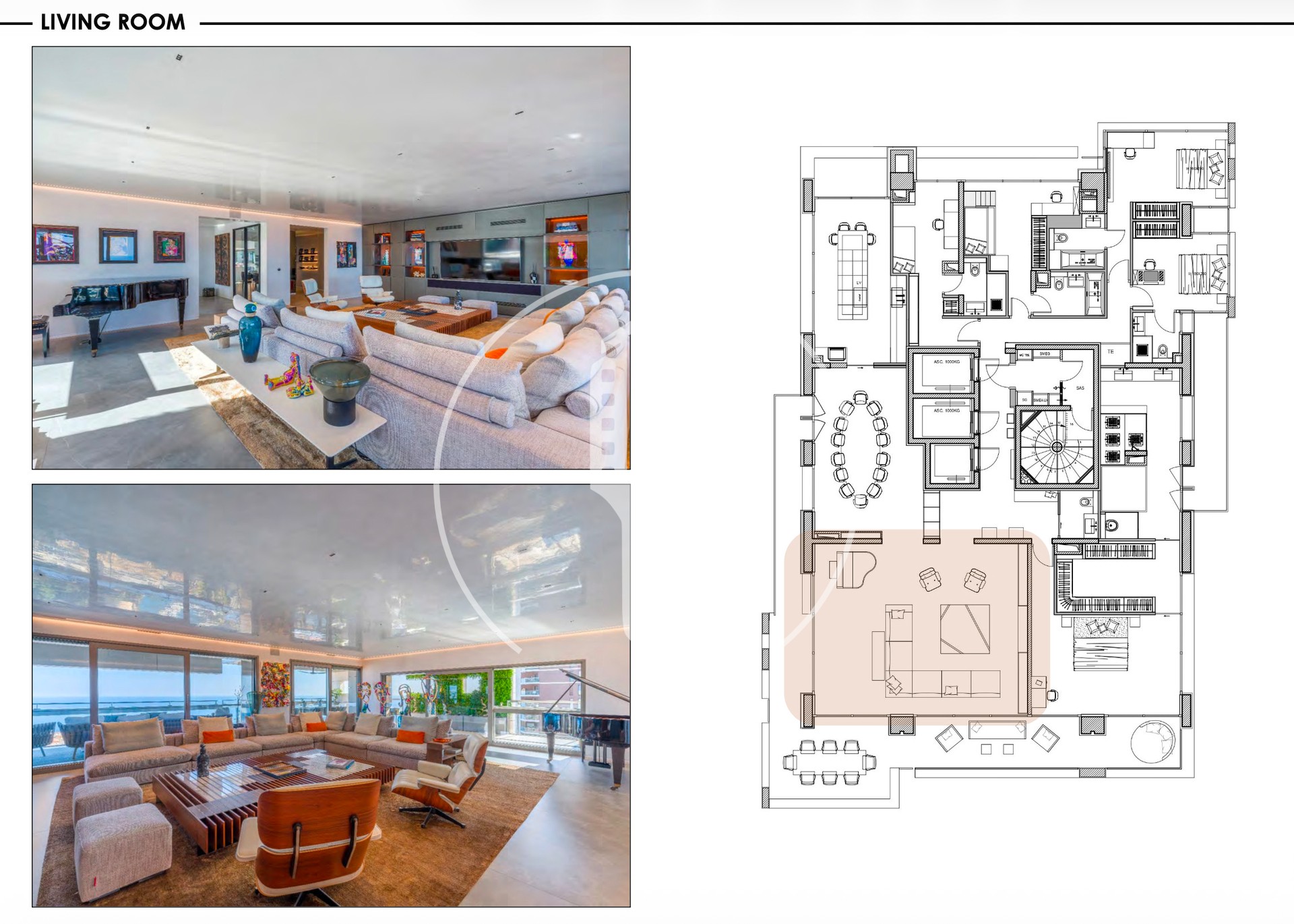 L’appartement comprend 5 chambres, chacune avec sa propre salle de bain attenante. La chambre principale s’ouvre sur une grande terrasse et comprend un home cinéma, un dressing double ainsi qu’un spa avec jacuzzi.