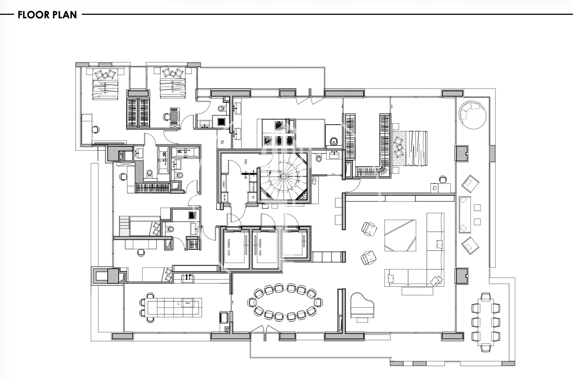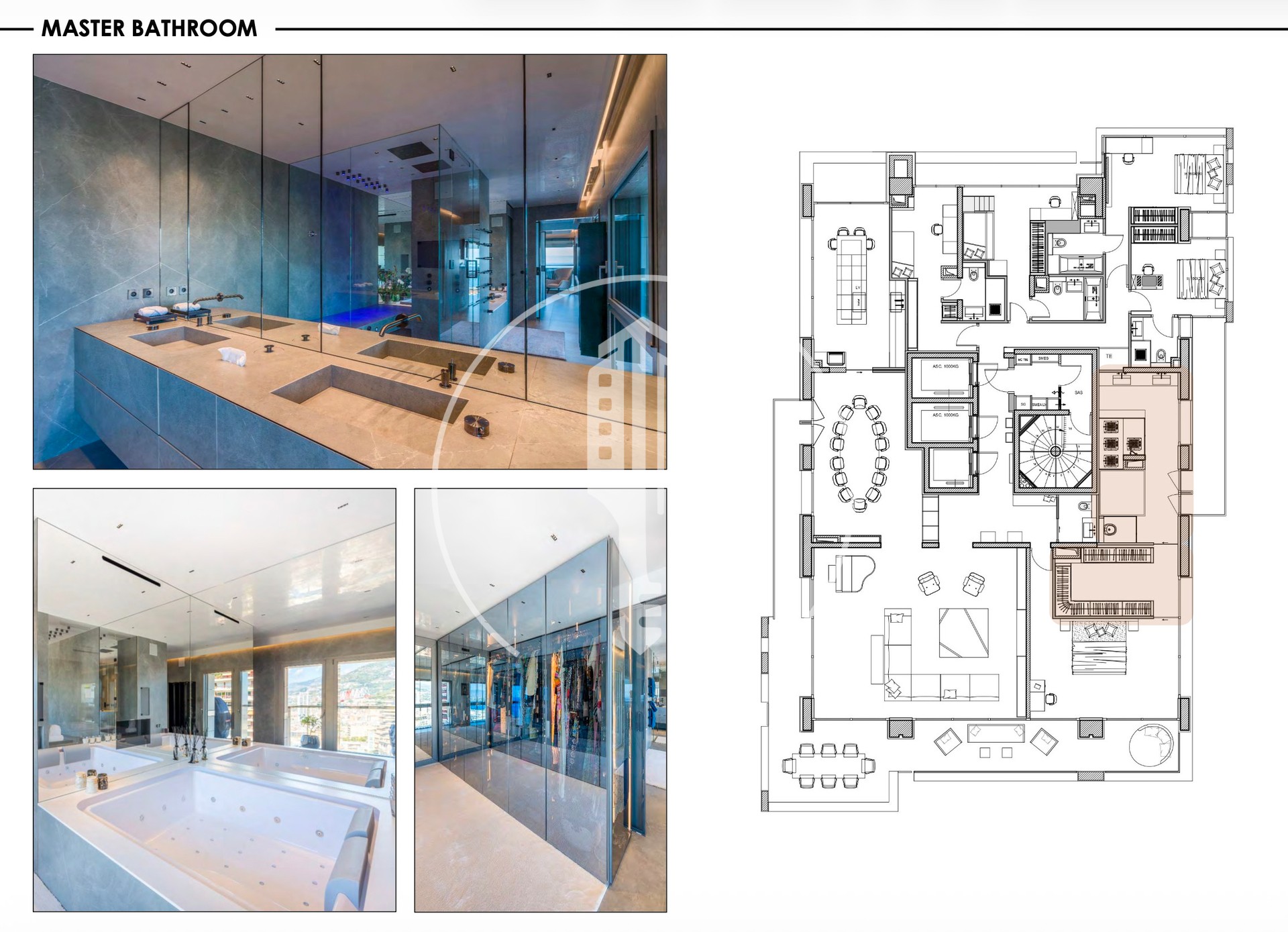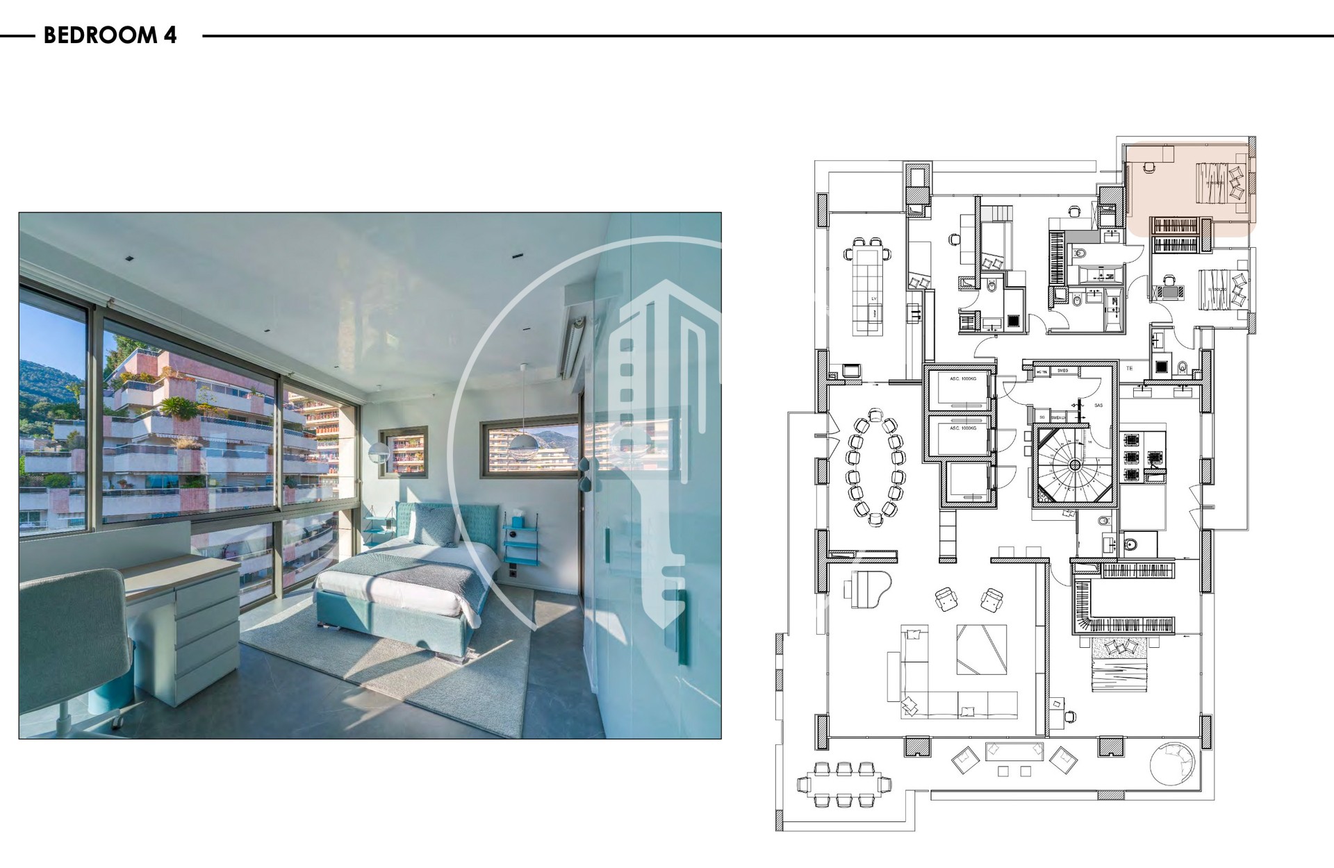 L’appartement comprend 5 chambres, chacune avec sa propre salle de bain attenante. La chambre principale s’ouvre sur une grande terrasse et comprend un home cinéma, un dressing double ainsi qu’un spa avec jacuzzi.