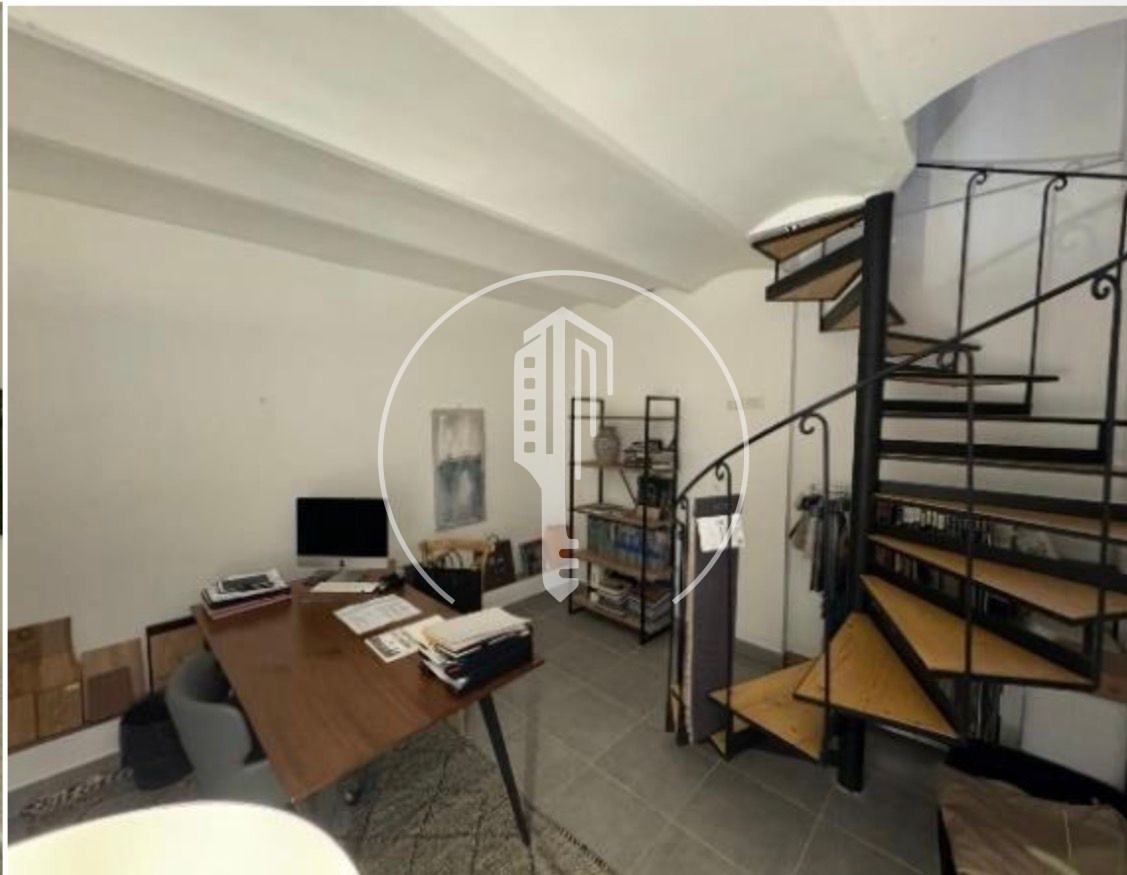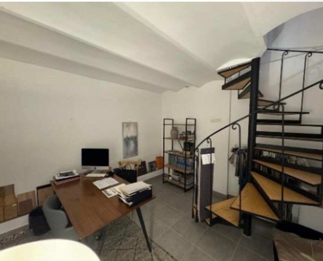 Actuellement loué en bureau, le bien offre une distribution fonctionnelle avec un séjour, une cuisine, une chambre au niveau principal, ainsi qu’un espace complémentaire en niveau inférieur, accessible par escalier en colimaçon, idéal comme salon TV, bureau ou espace de rangement.