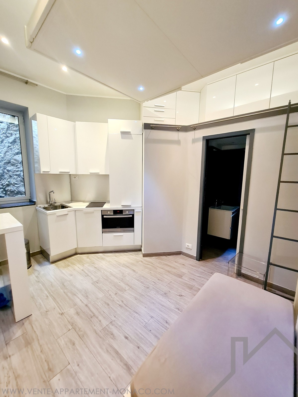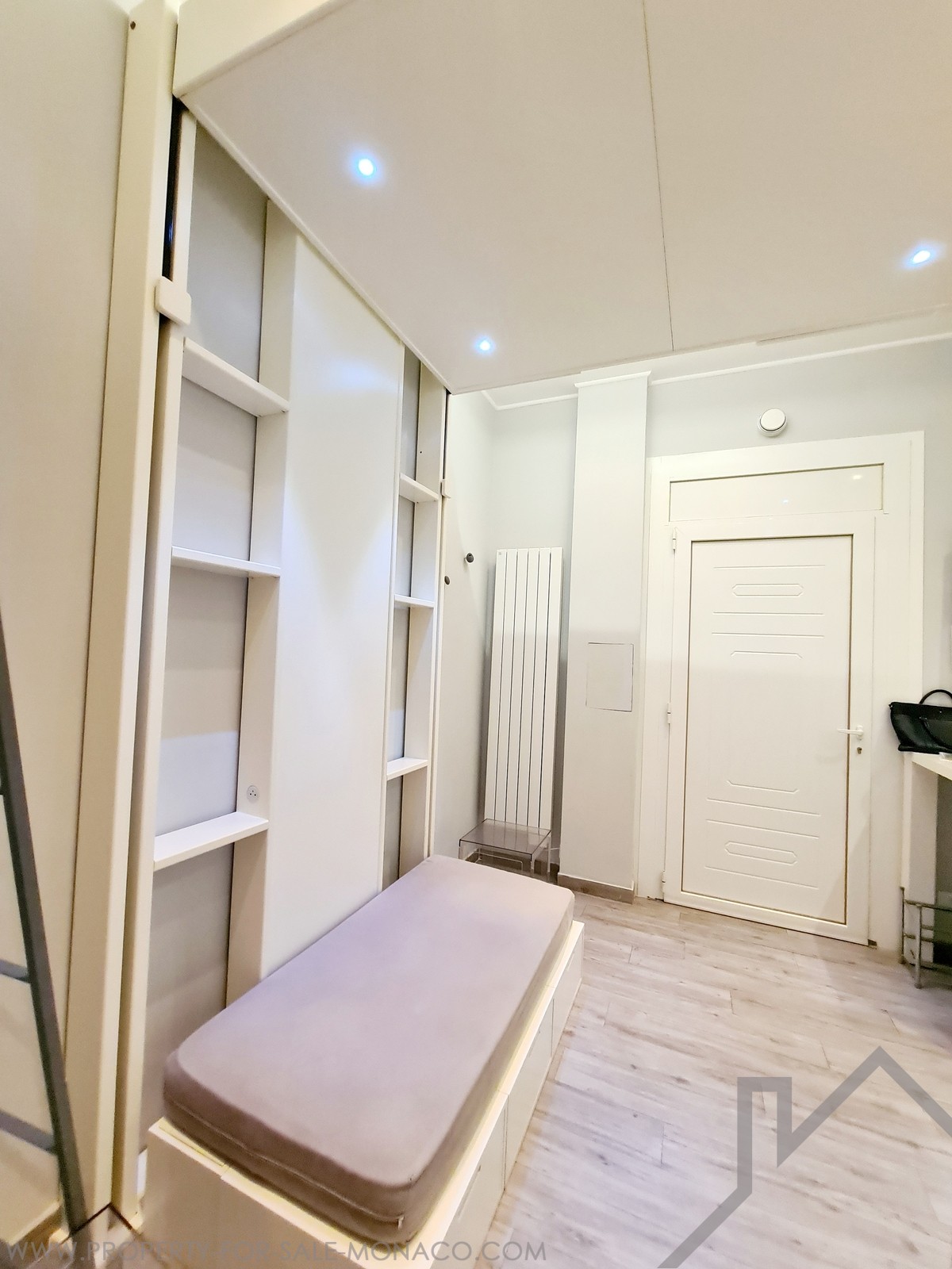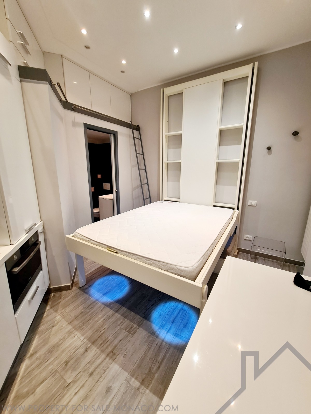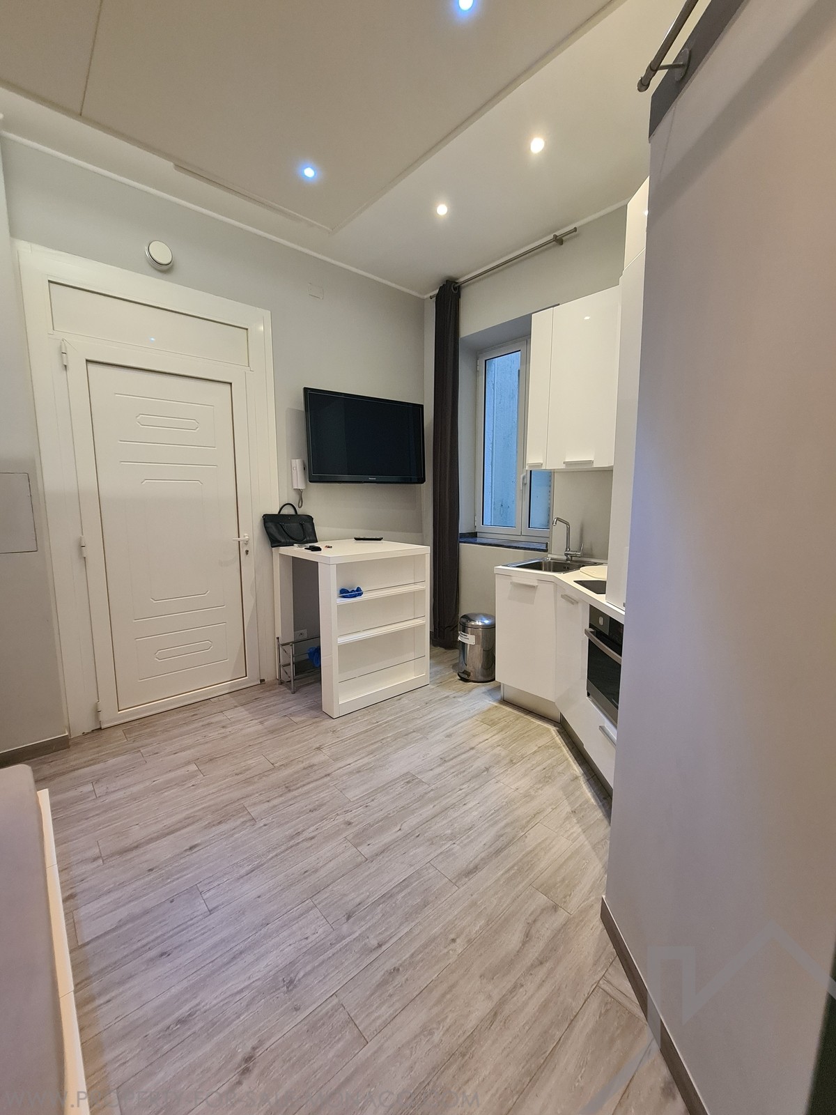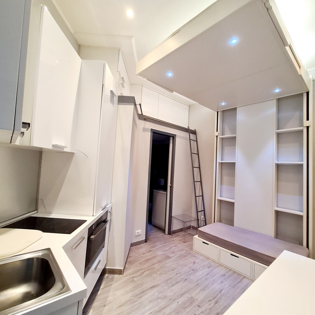 Studio sur l'arrière de l'immeuble (au 2ème sous étage) composé d'une pièce principale avec kitchenette, une salle d'eau avec toilette. Aménagé avec des meubles sur mesure, c'est le pied-à-terre parfait pour une personne