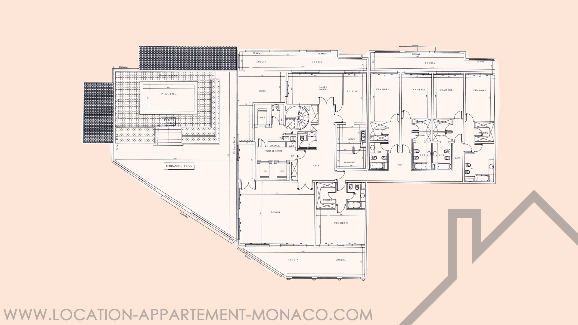 - Terrasses/Loggias : Une vaste terrasse avec piscine privative invite à des moments de détente exclusifs.