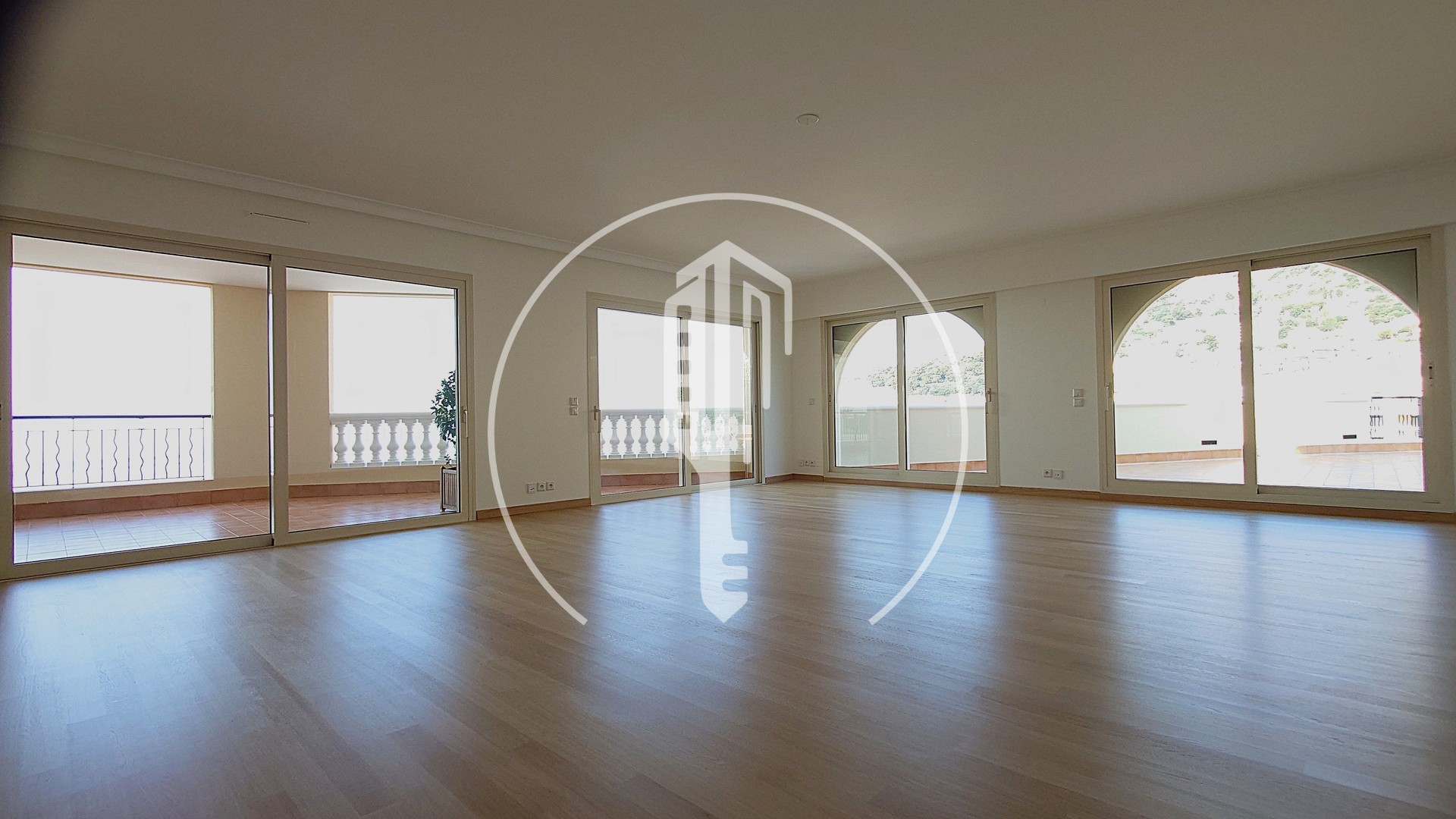 Situé au 9ème et dernier étage du bloc A, cet appartement de 7 pièces s’ouvre sur une terrasse de 210 m² avec piscine, prolongée par 126 m² de loggias, l’ensemble orienté sud-ouest avec une vue mer dégagée. Le séjour et la suite principale bénéficient de cette ouverture et accèdent à une large loggia commune, tandis que le séjour se prolonge également vers la terrasse principale. La cuisine, spacieuse et équipée, propose de nombreux rangements et communique avec une salle à manger de 22 m², chacune de ces pièces étant ouverte sur deux loggias couvertes. Une buanderie complète harmonieusement cet espace de vie. La partie nuit se compose de quatre chambres, toutes ouvertes sur une loggia commune et disposant chacune de leur salle de bains et dressing.