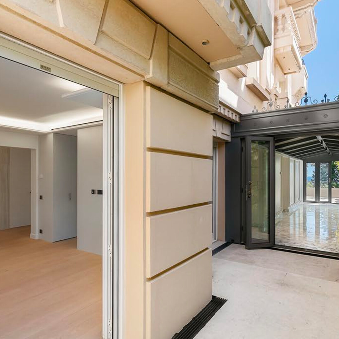 Il offre un vaste séjour baigné de lumière, aménagé en deux espaces distincts, s’ouvrant sur une terrasse avec une vue imprenable sur le Casino. Un élégant jardin d’hiver avec cheminée, prolongé lui aussi par une terrasse, vient sublimer cet espace de vie rare.
