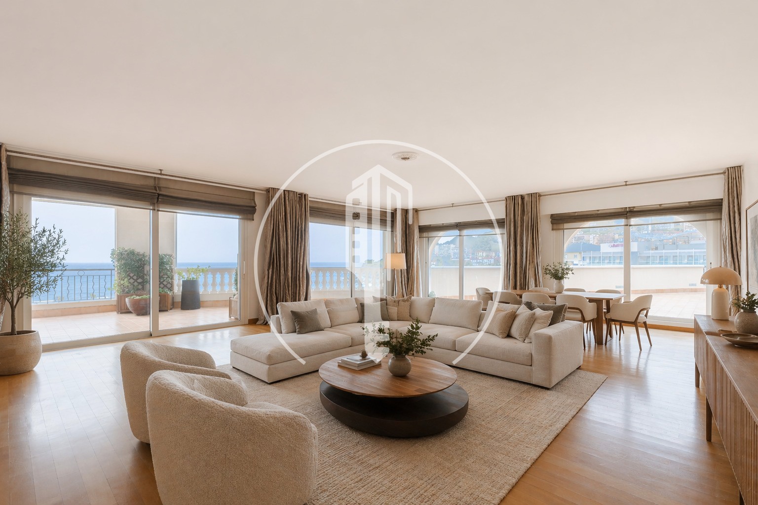 Ce bien rare se compose de 7 pièces soigneusement agencées pour maximiser l'espace et la lumière. Le séjour, généreux et accueillant, bénéficie d'une exposition sud, garantissant une luminosité optimale et une vue magnifique sur le littoral. Adjacente, la salle à manger offre l'espace idéal pour des dîners élégants.