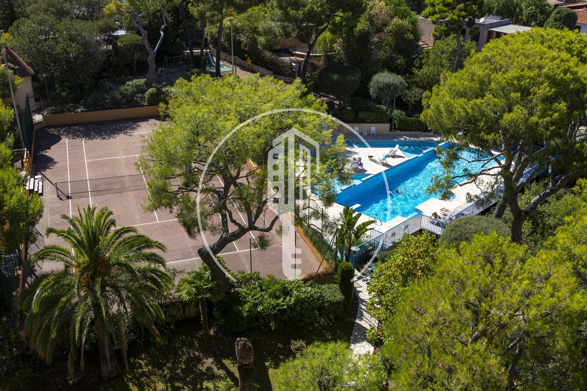 Situé au sein de la résidence "Les Ligures", immeuble avec service conciergerie 24h/24, piscine et terrain de tennis, ce deux pièces offre un cadre de vie agréable dans un environnement calme.Lumineux et spacieux, il se compose d'une entrée avec placards, un toilette invités, un vaste séjour donnant sur la terrasse, une cuisine équipée indépendante, et une chambre avec salle de bains en suite.