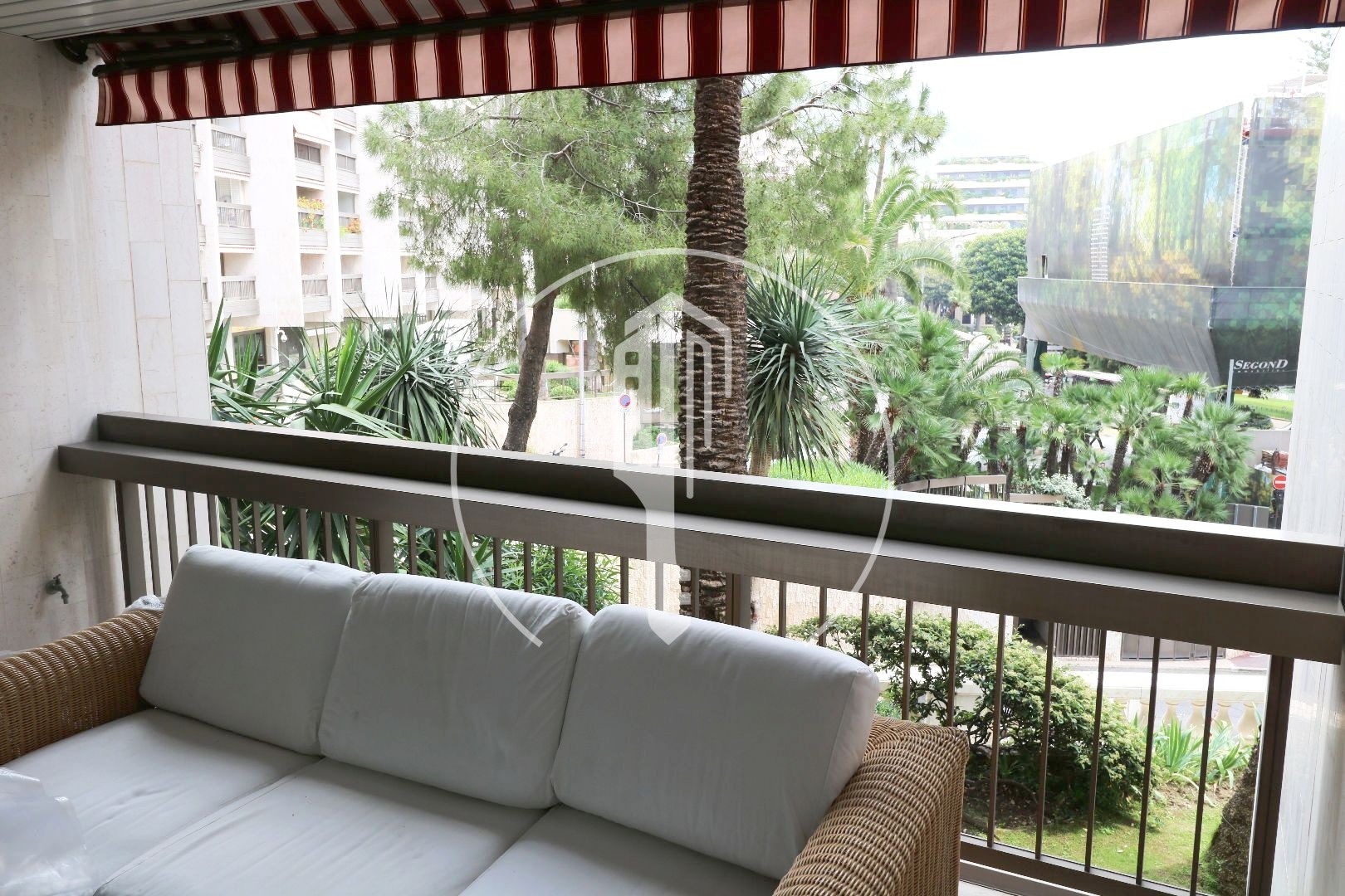 Dans une résidence de standing dans le Carré d'Or avec piscine interne couverte, Studio d'environ 50 m² dont 37 m² habitable et 13 m² de loggia, avec vue citadine. Description : Entrée, kitchenette équipée, salle de bains, pièce principale, loggia. 1 parking Libre de suite