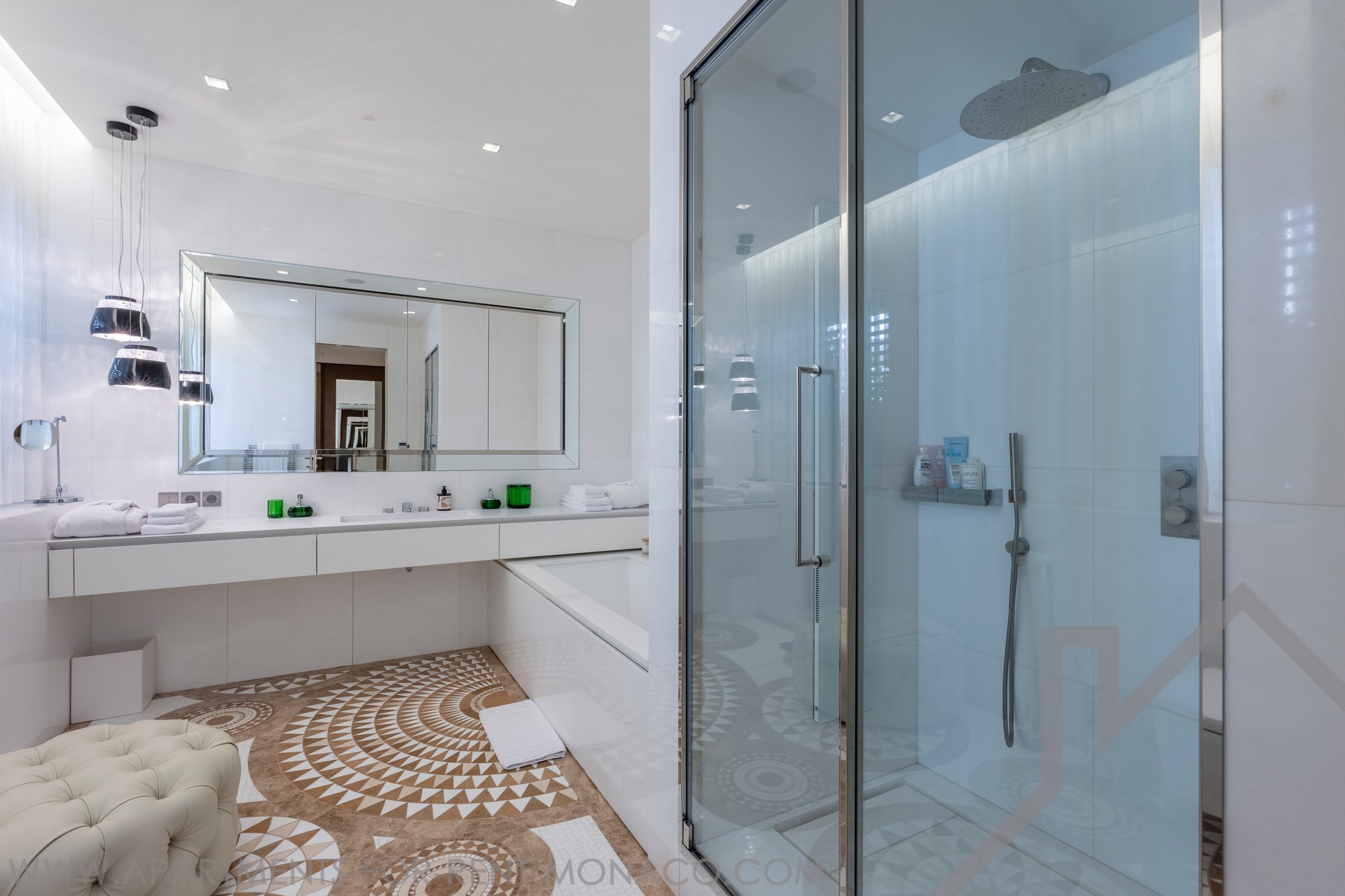 Cet élégant appartement se compose d’un hall d’entrée, d’un vaste séjour double prolongé par une profonde terrasse, d’une cuisine entièrement équipée, de cinq chambres en suite chacune avec sa salle d’eau et son dressing, d’une buanderie ainsi que d’un toilette invités.